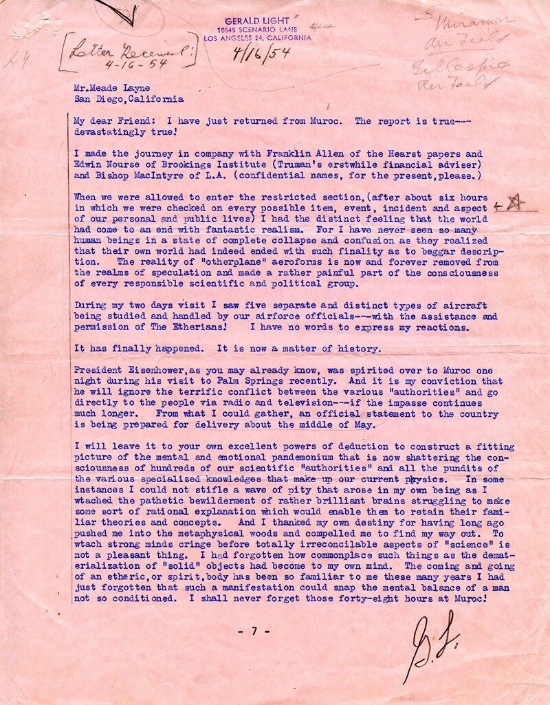 Gerald Light Letter – Smoking Gun – April 16, 1954